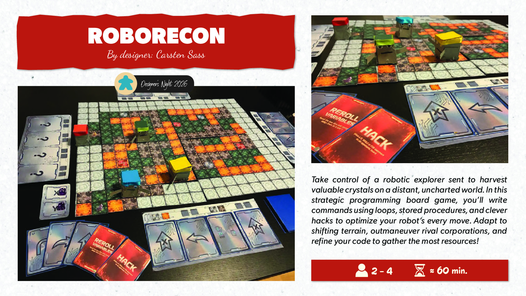 Take control of a robotic explorer sent to harvest valuable crystals on a distant, uncharted world. In this strategic programming board game, you’ll write commands using loops, stored procedures, and clever hacks to optimize your robot’s every move. Adapt to shifting terrain, outmaneuver rival corporations, and refine your code to gather the most resources!