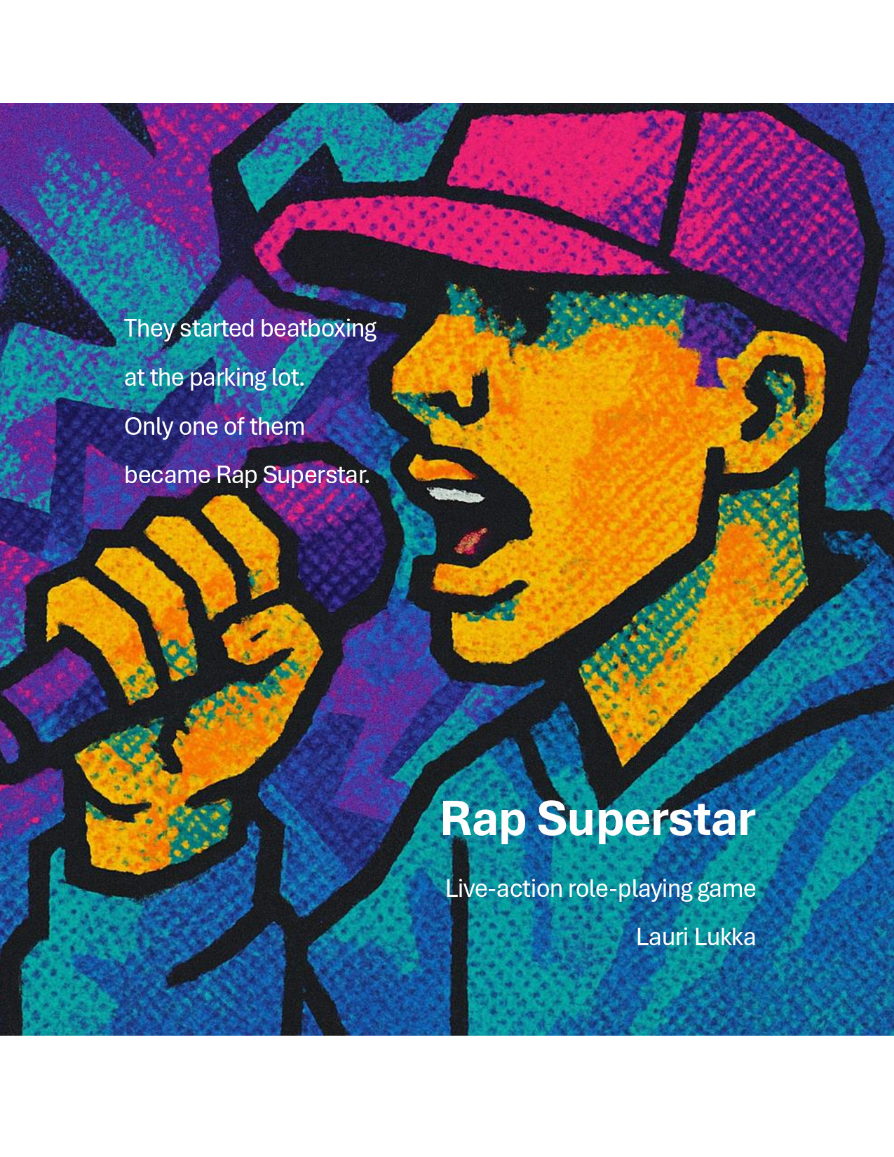 Rap Superstar is a live-action role-playing game about a crew of rap heads spraying concrete, blasting beats, and writing bars that just might change their lives. It is the concluding part of the music-driven games trilogy.