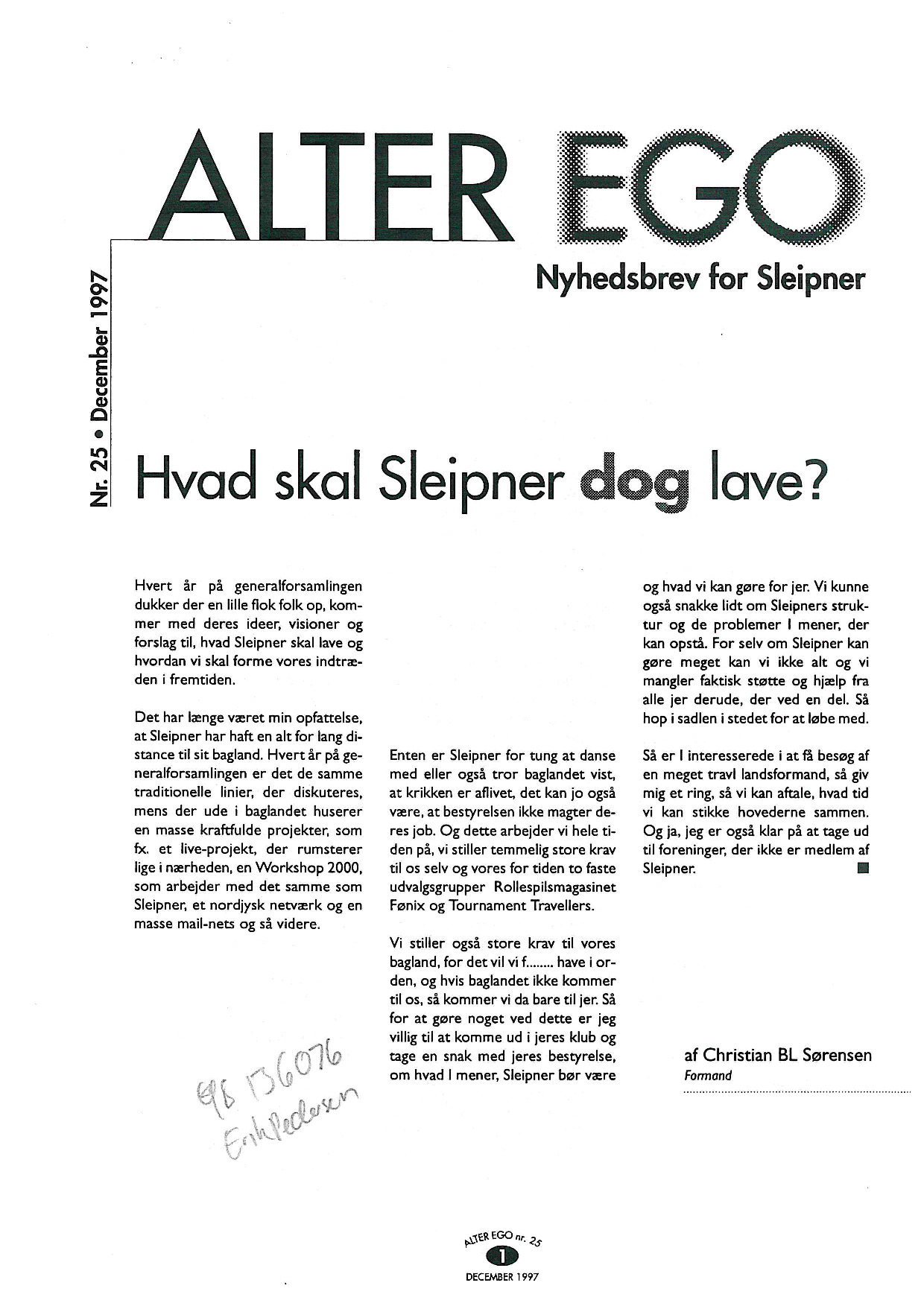 Seite 1 | Hvad skal Sleipner dog lave? | Christian B. L. Sørensen | Skribent | |
