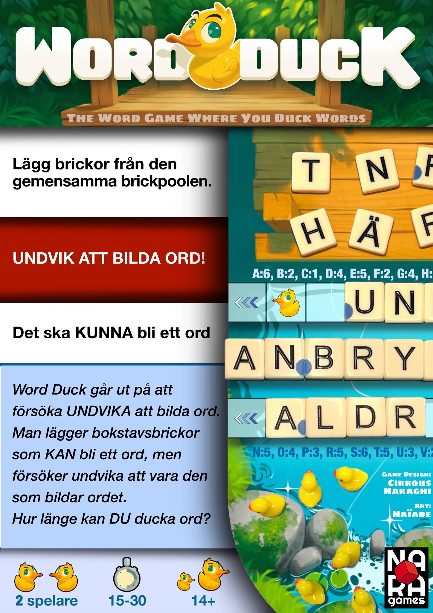 Word Duck is a about NOT creating words. You place letters that could complete a word but try to not be the person that completes them. The word game where you duck words.