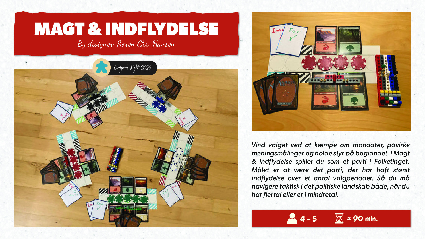 Vind valget ved at kæmpe om mandater, påvirke meningsmålinger og holde styr på baglandet. I Magt & Indflydelse spiller du som et parti i Folketinget. Målet er at være det parti, der har haft størst indflydelse over et antal valgperioder. Så du må navigere taktisk i det politiske landskab både, når du har flertal eller er i mindretal.